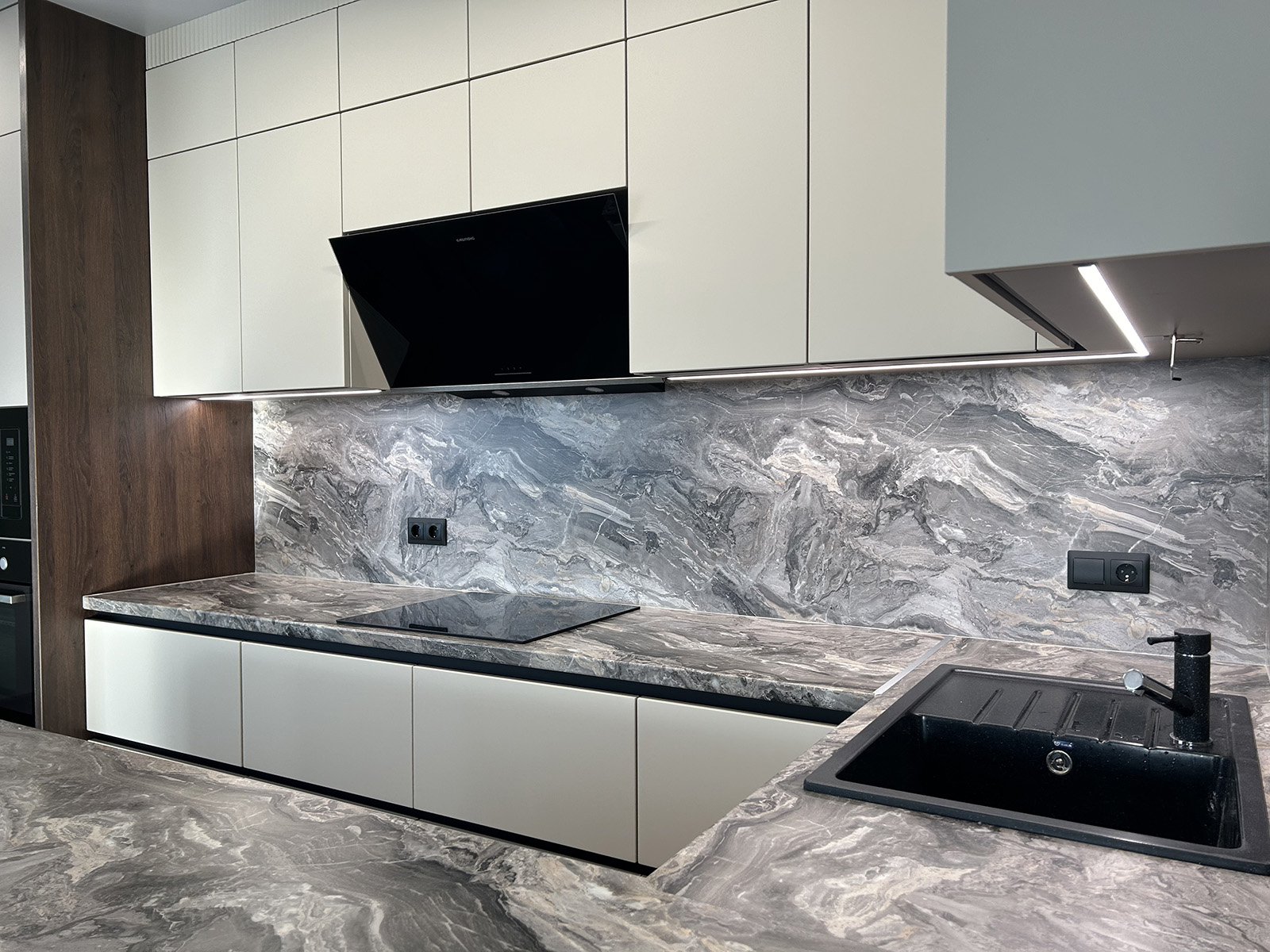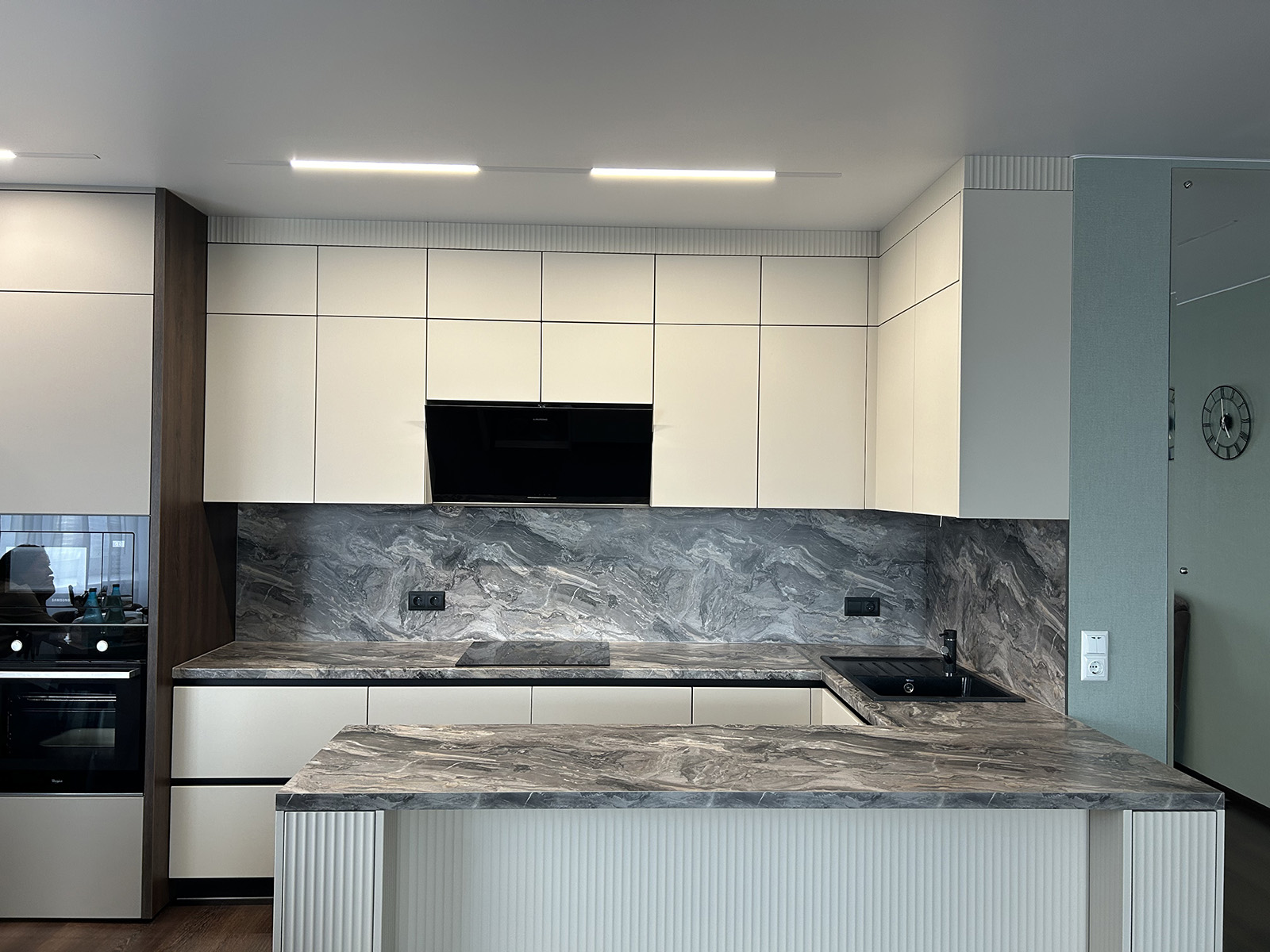 Кухня с островом и встроенной техникой
