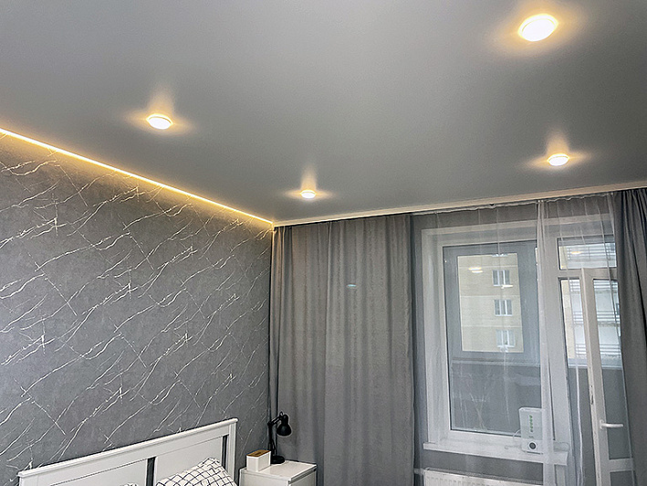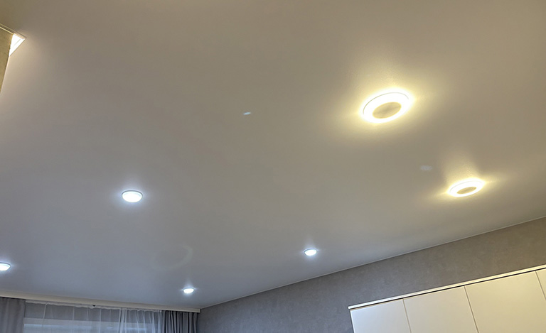 Наша компания предлагает широкий выбор натяжных потолков различных цветов, текстур и оттенков. У нас вы найдете натяжные потолки с матовой поверхностью, а также потолки с подсветкой, включая светодиодные и точечные варианты. Мы поможем вам выбрать идеальный натяжной потолок для вашей кухни, спальни или любого другого помещения.