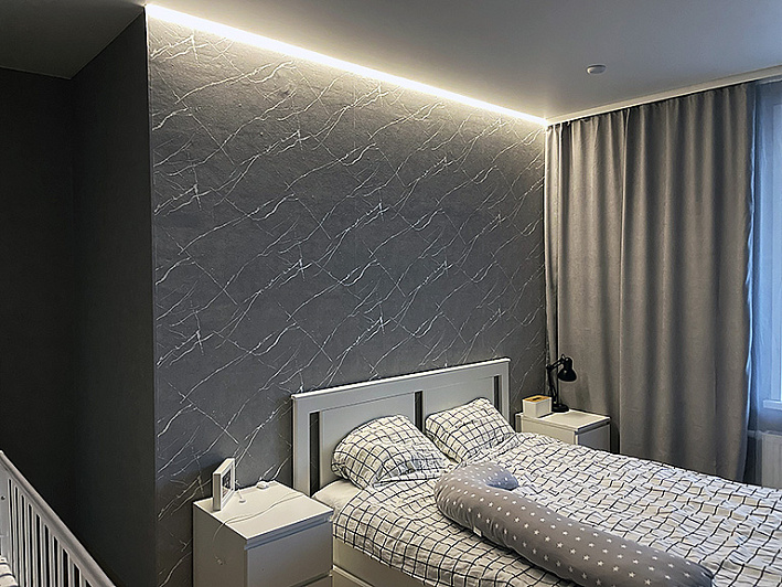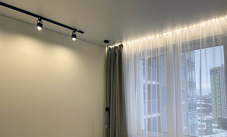Двухрядная скрытая от глаз система создаёт аккуратную нишу для штор и занавесок