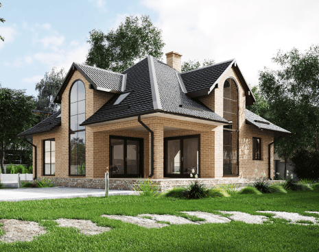 Подходит для просторных домов с красивым видом из окон. Большие стеклянные поверхности зрительно увеличивают пространство, наполняя дом светом.