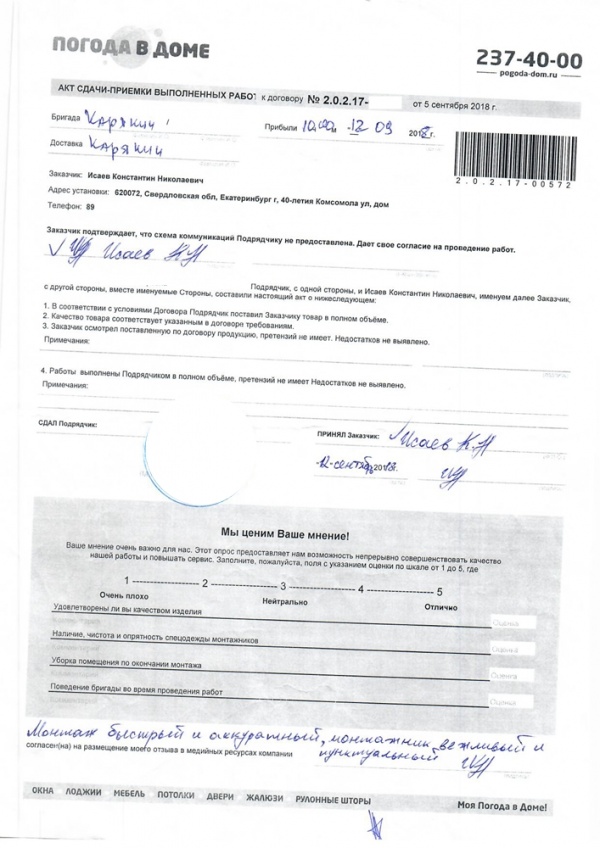 Выбирать долго не пришлось выбрали проверенную компанию "Погода в доме" ,т.к в мае 2025 делали балкон. Работу сделали качественно, аккуратно! Балкон теперь мое любимое место для отдыха, я так счастлива. Очень радует результат работы, мастера Евгений и Александр профессионалы своего дела. Спасибо вам за такой усердный труд! Я очень благодарна компании Погода в доме .Всем рекомендую отлично работают на совесть