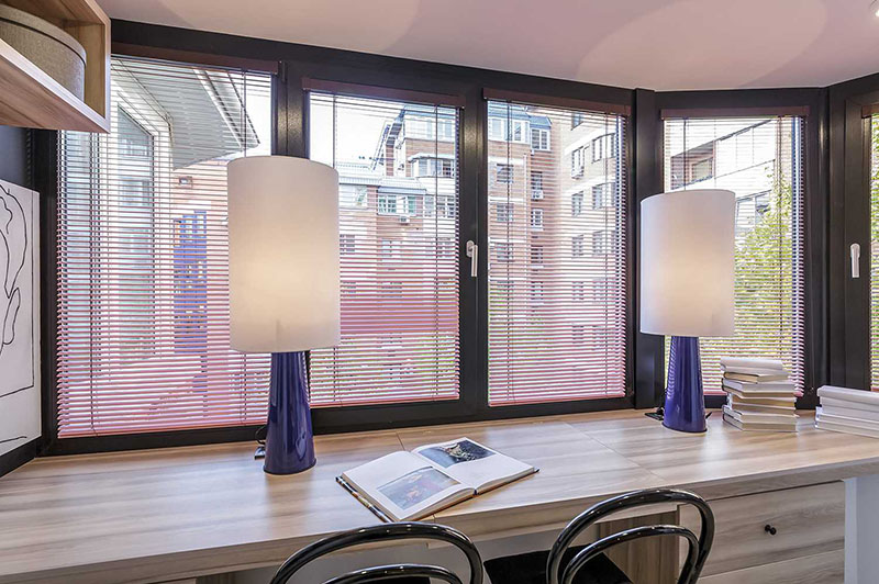 Горизонтальные жалюзи – широко известный и популярный вид современной солнцезащитной продукции. Конструкция жалюзи выполнена из стальных профилей, встроенных в верхний карниз механизмов поворота и подъема, горизонтально расположенных ламелей, соединенных в полотно посредством прочных веревок и лесенки. Поворот и подъем ламелей позволяет эффективно регулировать световой поток, обеспечивать оптимальную солнцезащиту и приватность. Горизонтальные жалюзи обладают высокими функциональными и декоративными свойствами. Они прекрасно выглядят в современных интерьерах, подчеркивая чистоту и ясность линий.