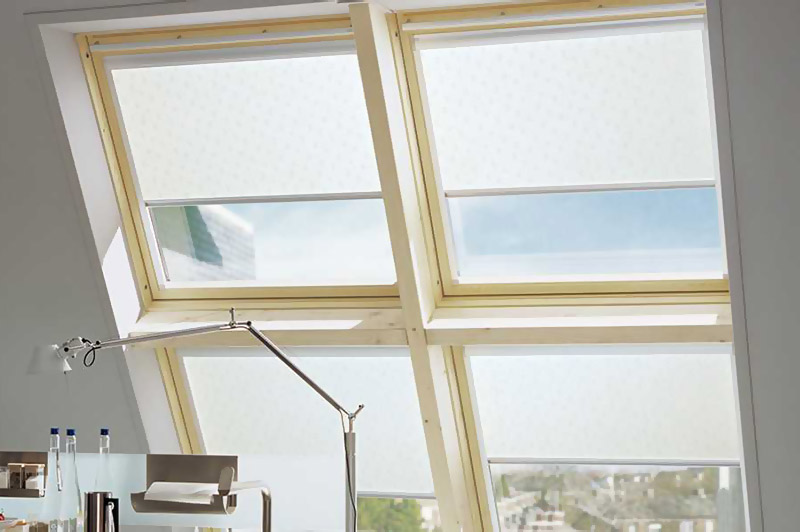 Рулонные шторы UNI-1 - Установка системы UNI-1 осуществляется максимально плотно к стеклу, а наличие направляющих обеспечивает удержание ткани рулонных штор параллельно створки откидного окна и исключает проникновение света по краям ткани в закрытом состоянии штор.